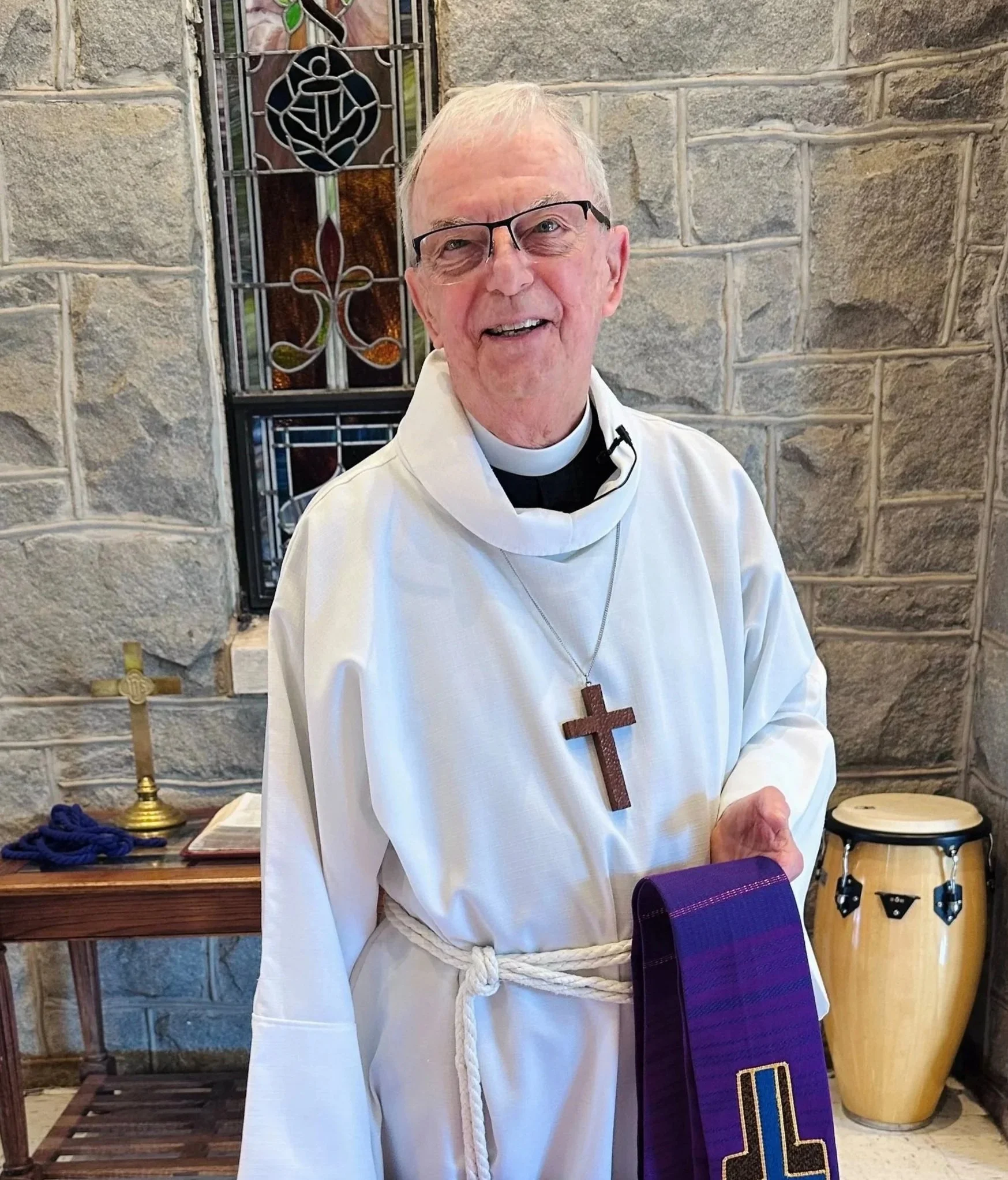 Although trained as an amateur church musician on the French horn, he eventually learned to play electric guitar and bass which led to his founding of Christian worship bands, mostly with other Lutheran pastors. After he has rebuilt the calluses on his fingers, he is willing to play guitar for the campus ministry, if necessary.